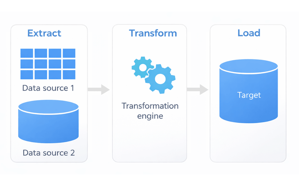 Information comes from many places (e.g. databases, files, cloud storage, APIs, SaaS tools, and older systems) and in many formats (CSV, XML, JSON, structured tables, etc.).